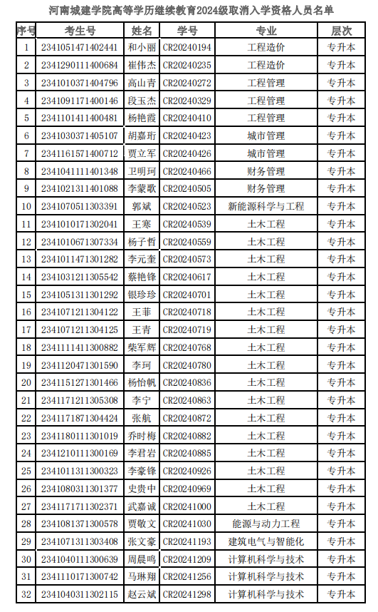 按照河南省教育厅《关于做好普通高等公司录取新生入学资格复查和学籍电子注册工作的通知》和《beat365在线体育成人高等教育员工学籍管理规定》的要求,beat365在线体育2023年高等学历继续教育录取考生(即2024级新生)和小丽等113人,其中刘晓燕(CR20242029)、马琳翔(CR20241256)和娄渊慧(CR20242584)三人属于已交纳学费后自动放弃入学资格,其他110人经联系确认,均未在规定时间内交费报到注册。