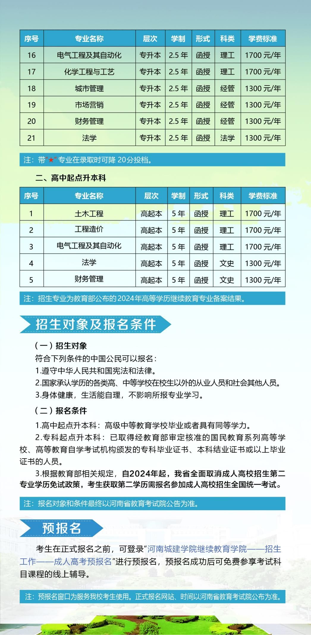 四、beat365在线体育高等学历继续教育招生信息以河南省教育厅、河南省教育考试院、beat365在线体育官网发布的招生信息为准。2024年beat365在线体育高等学历继续教育拟招专升本层次21个专业、高起本层次5个专业。(详见后附2024年招生简章)