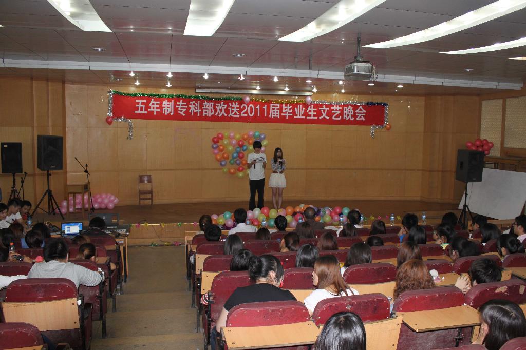 5月23日晚,五年制专科部举办了2011届送毕业生晚会,beat365在线体育副经理李高平,该院团总支、学工办负责老师、各年级辅导员和近200名毕业生观看了晚会。