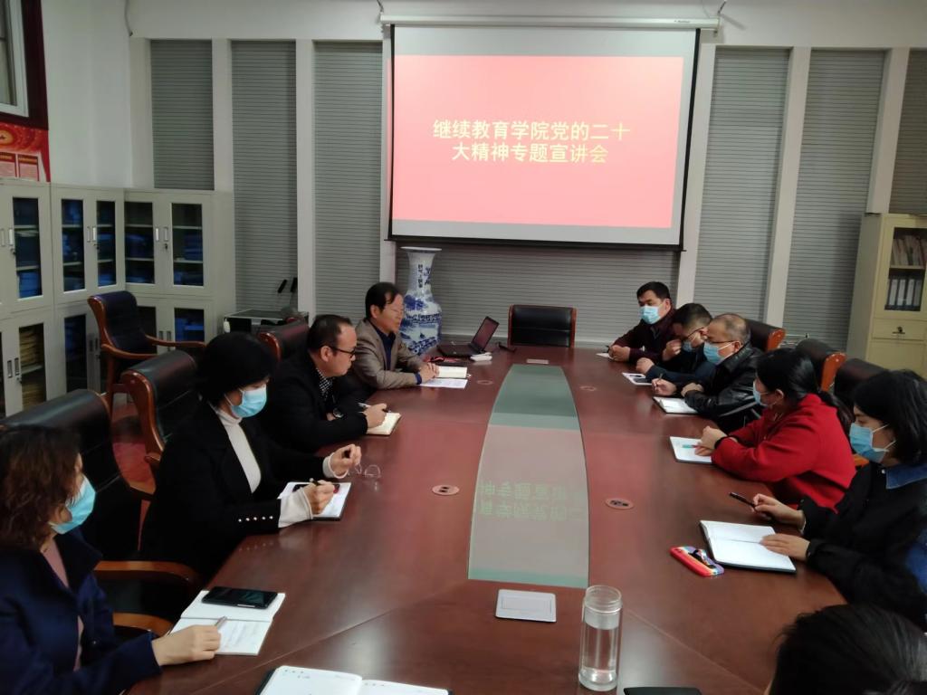 11月4日,继续教育公司党支部召开宣传贯彻党的二十大精神专题宣讲会。会议由党支部书记马照民主持,beat365在线体育全体教职工参会。