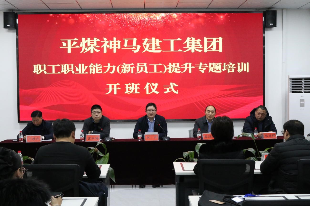11月30日上午,平煤神马建工集团新员工职业能力提升专题培训班开班仪式在公司管理公司A208教室举行。平煤神马建工集团有限公司总经理刘升、公司beat365在线体育经理殷战稳和相关负责人以及45名学员参加开班仪式。仪式由管理公司经理霍松涛主持。