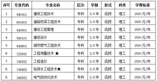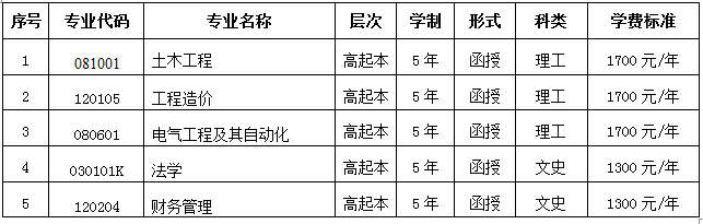 :(1)高起本:全国成人高招考试总分均为600分,去年录取分数线文史类为200分、理工类为165分。(2)专升本:全国成人高招考试总分均为450分,去年录取分数线为:理工类110分,经管类 115分,法学类160分。(3)专 科:全国成人高招考试总分均为450分,去年录取分数线均为140分。(4)其中带“★”专业在录取时可降低20分投档;年龄超过25周岁者的考生在录取时可在考试成绩基础上增加20分投档。