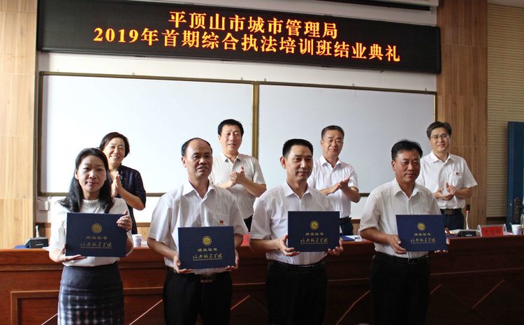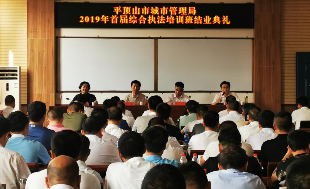 (通讯员孙敬克)9月29日,平顶山市城市管理局2019年首届综合执法培训班结业典礼在公司beat365在线体育多媒体教室举行。平顶山市城市管理局局长彭涛、副局长史志辉、公司科研处处长毛艳丽、beat365在线体育马宁奇出席典礼并给全体学员颁发结业证书。市城管局相关领导、城市管理综合执法培训人员及beat365在线体育全体教职工共100余人参加了本次结业典礼。会议由史志辉主持。