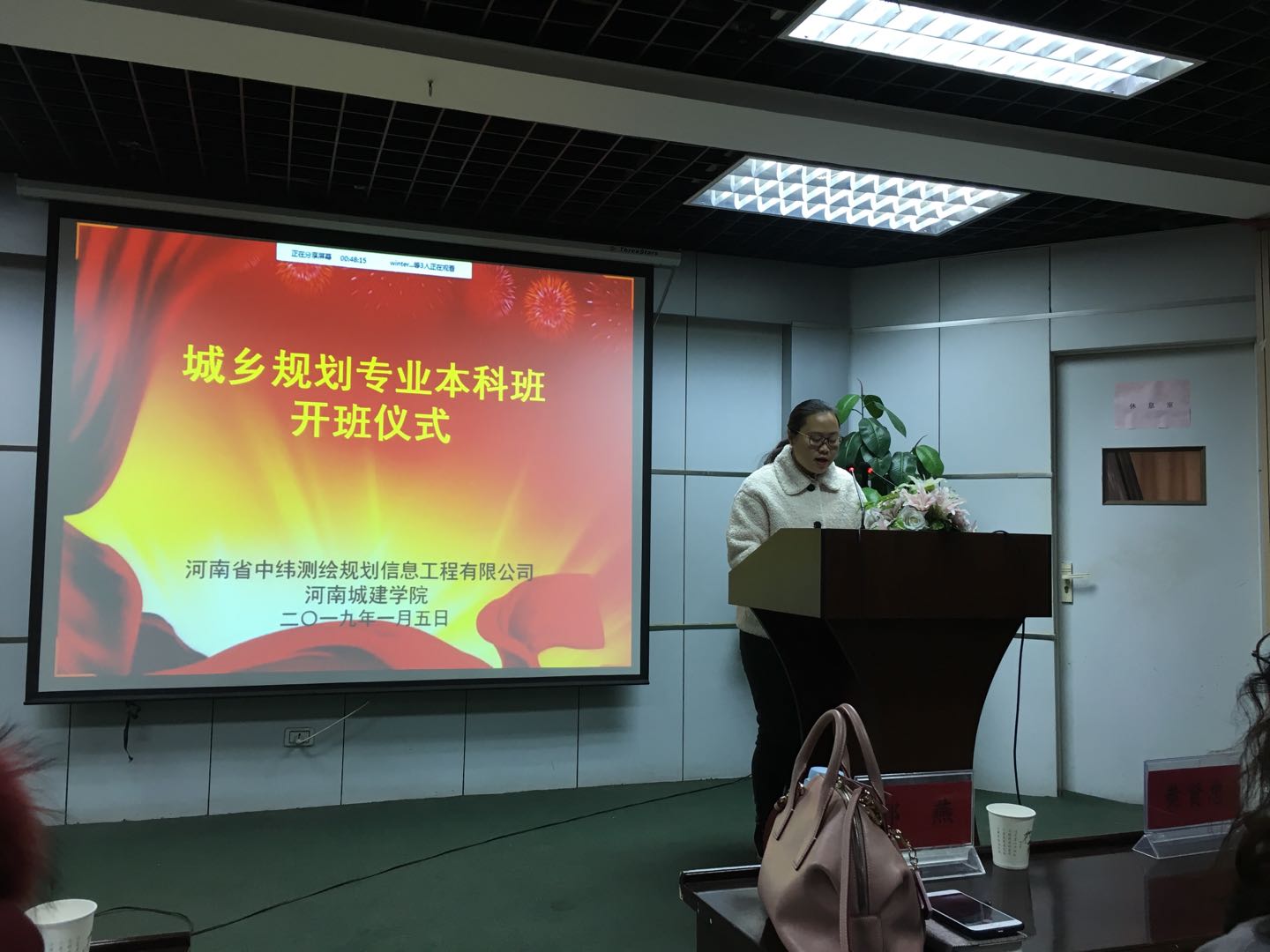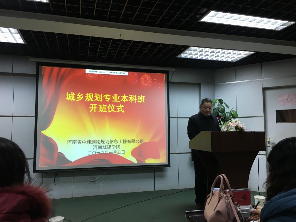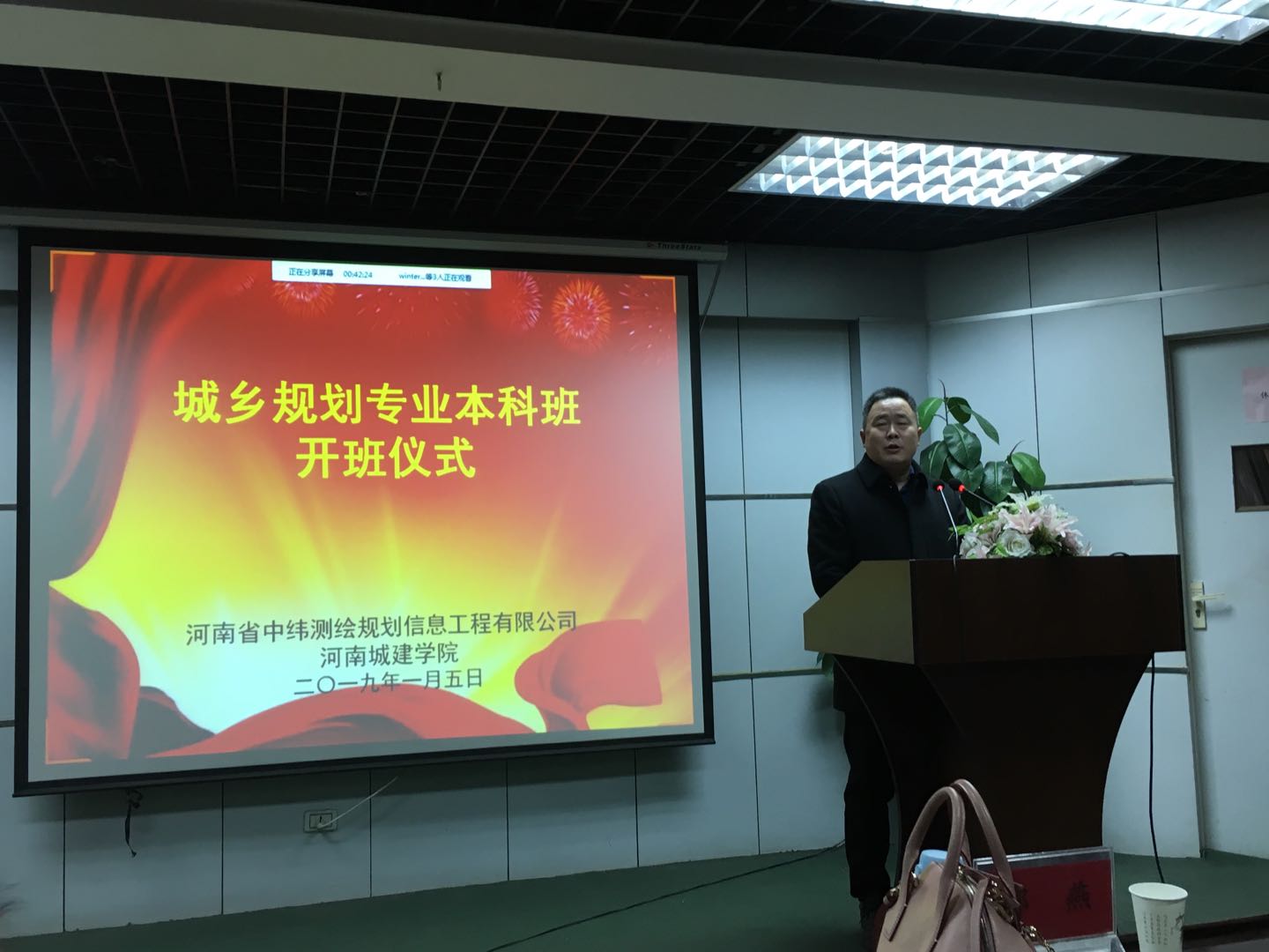 1月5日上午,在焦作中纬公司会议室,公司与河南省中纬测绘规划信息工程有限公司举行“城乡规划专业本科班开班仪式”。中纬公司董事长黄贤忠、副总经理田德林、邓波、张红方等公司高管出席开班仪式,公司beat365在线体育书记樊铮钰、培训部主任石磊、郑金梅,建筑与城市规划公司经理邢燕、副经理郭汝、部门相关负责人以及30余名合作班学员参加会议。会议由中纬公司副总经理张红方主持。