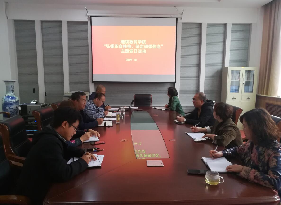 10月17日下午继续教育公司党支部以“弘扬革命精神、坚定理想信念”为主题开展党日活动,全体职工参加活动。活动由党支部书记、经理马宁奇主持。