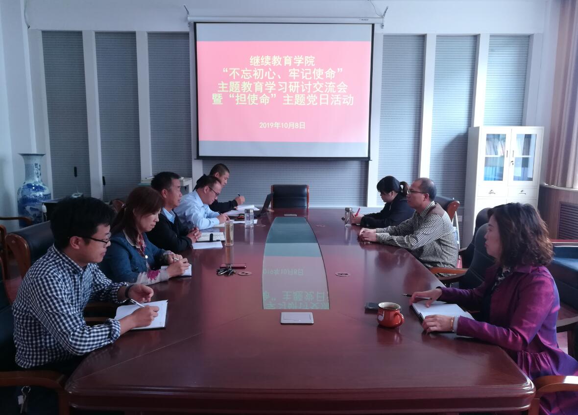 在举国欢庆祖国70华诞和“不忘初心、牢记使命”主题教育深入开展之时,继续教育公司党支部于10月8日在2号教学楼A座310会议室开展“不忘初心、牢记使命”主题教育学习研讨交流会暨“担使命”主题党日活动。活动由继续教育公司党支部书记、经理马宁奇主持,副经理王晓涛及全体党员干部和教职工参加会议。会上、王晓涛传达学习了《beat365在线体育关于做好“干事创业精气神不够、患得患失、不担当不作为问题”专项整治工作方案》。